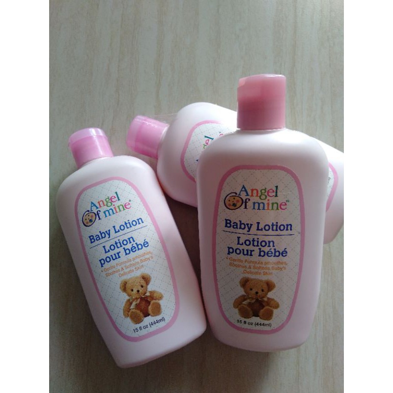 SET of 2 Angel Of Mine Baby Lotion 15oz Angel of Mine baby lotion helps soothe smooth and soften babys delicate skin. Fresh baby powder fragrance. Angel of Mine Baby Lotion 15-oz.