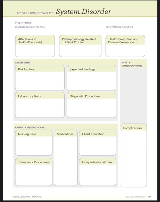 ACTIVE LEARNING TEMPLATE System Disorder STUDENT NAME DISORDERDISEASE PROCESS REVIEW MODULE CHAPTER Alterations in Health Diagnosis Pathophysiology Related to Client Problem Health Promotion and Disease Prevention ASSESSMENT SAFETY CONSIDERATIONS Risk Factors Expected Findings Laboratory Tests Diagnostic Procedures PATIENT-CENTERED. 7 Phenomenal ati System Disorder Template 2020. Ati system disorder for pneumonia.